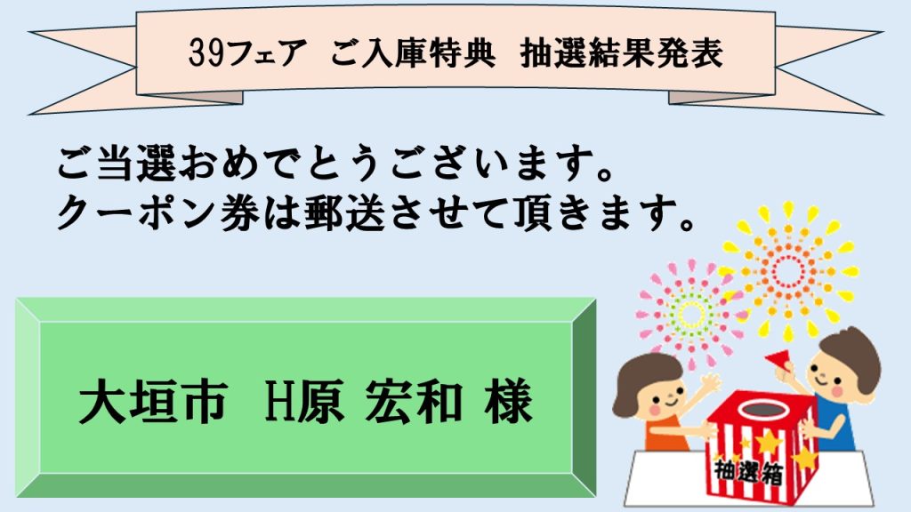 8月開催 39フェアご入庫特典 抽選結果 発表‼‼